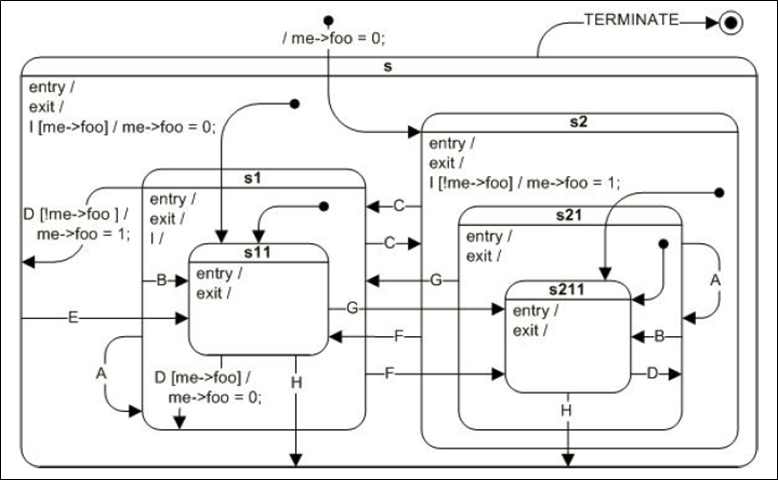 Consider the following state machine from Miro Samek in [Sam09] (part of Reading R4).